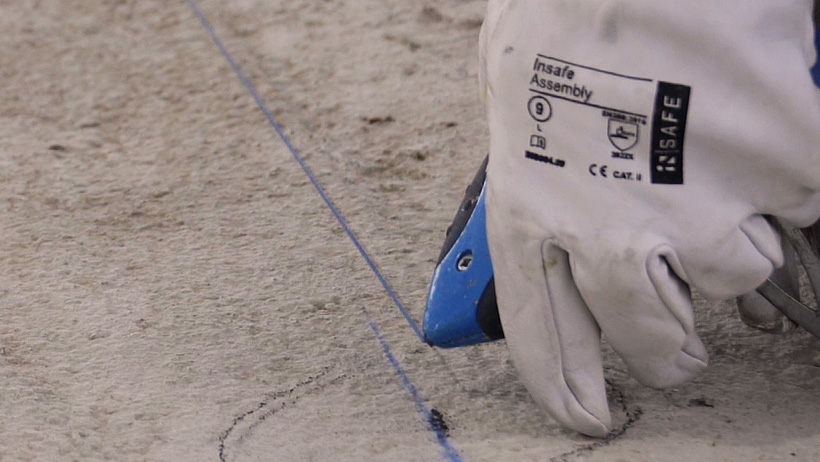 Tip: Use a chalk line to mark long lines (e.g. for positioning mats).