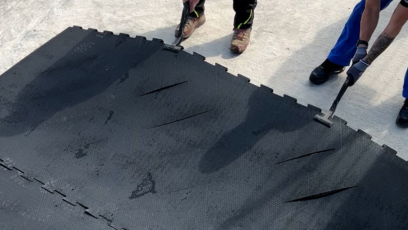 Prior to installation, choose the ideal time for laying the rubber mats. A key criteria is: The temperature! As with all floor installation work, maintaining a temperature window plays a paramount role. This is the only way to ensure that the single mats can adeptly adapt to temperature fluctuations and lay seamlessly next to each other.